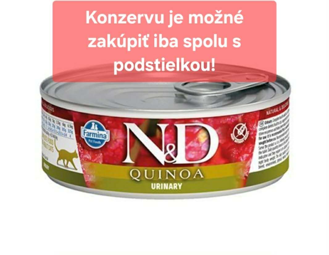 N&D Quinoa Urinary je kompletné diétne krmivo pre mačky, odporúčané na zníženie výskytu opakovanej tvorby struvitových kameňov a ochorenia dolných ciest močových u mačky.