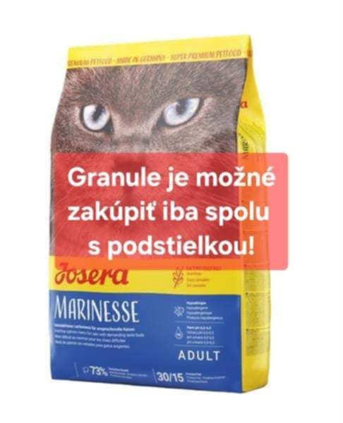 - Josera Marinesse s množstvom chutného lososa je optimálnym rybacím krmivom pre mačky. Toto krmivo je tiež ideálne pre mačky trpiace krmivovou intoleranciou. Unikátna receptúra obsahuje iba dobre tolerované proteíny a je bez obilia, vďaka čomu je ideálna pre citlivé mačky.